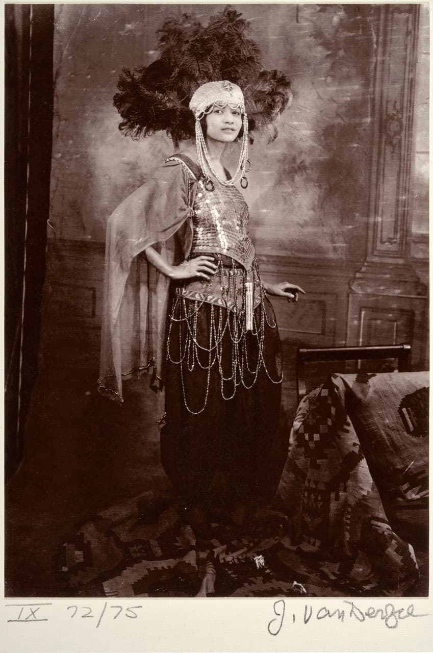 The Ramer’s most recent gift includes photographs by the acclaimed Harlem Renaissance photographer, James Van Der Zee. Van Der Zee’s images capture the vibrant and growing African American middle class in Harlem in the 1920s and 1930s, focusing on such subjects as a children’s swimming team and a dancer adorned in beads and feathers, confidently striking a pose [fig. 1]. The Ramer’s 2023 gift of three Van Der Zee photographs joins two other works by Van Der Zee given by the Ramers in 2016 and 2018. Though Van Der Zee operated a popular commercial photography studio on 135th Street and was well known in Harlem, it was not until he was in his eighties, and his work was included in the 1969 exhibition Harlem on My Mind: Cultural Capital of Black America, 1900–1968 at the Metropolitan Museum of Art that he earned widespread recognition. All five Ramer photographs are from Van Der Zee’s Portfolio of Eighteen Photographs, 1905–1938, printed in 1974. Following the 1969 exhibition—which was notably censured for including very few artworks by Harlem-based African American artists—Van Der Zee worked closely with Yale photography professor Richard Benson to print the portfolio featuring highlights from his early career. Van Der Zee’s 1974 portfolio allowed him to take greater control of his market and artistic narrative.