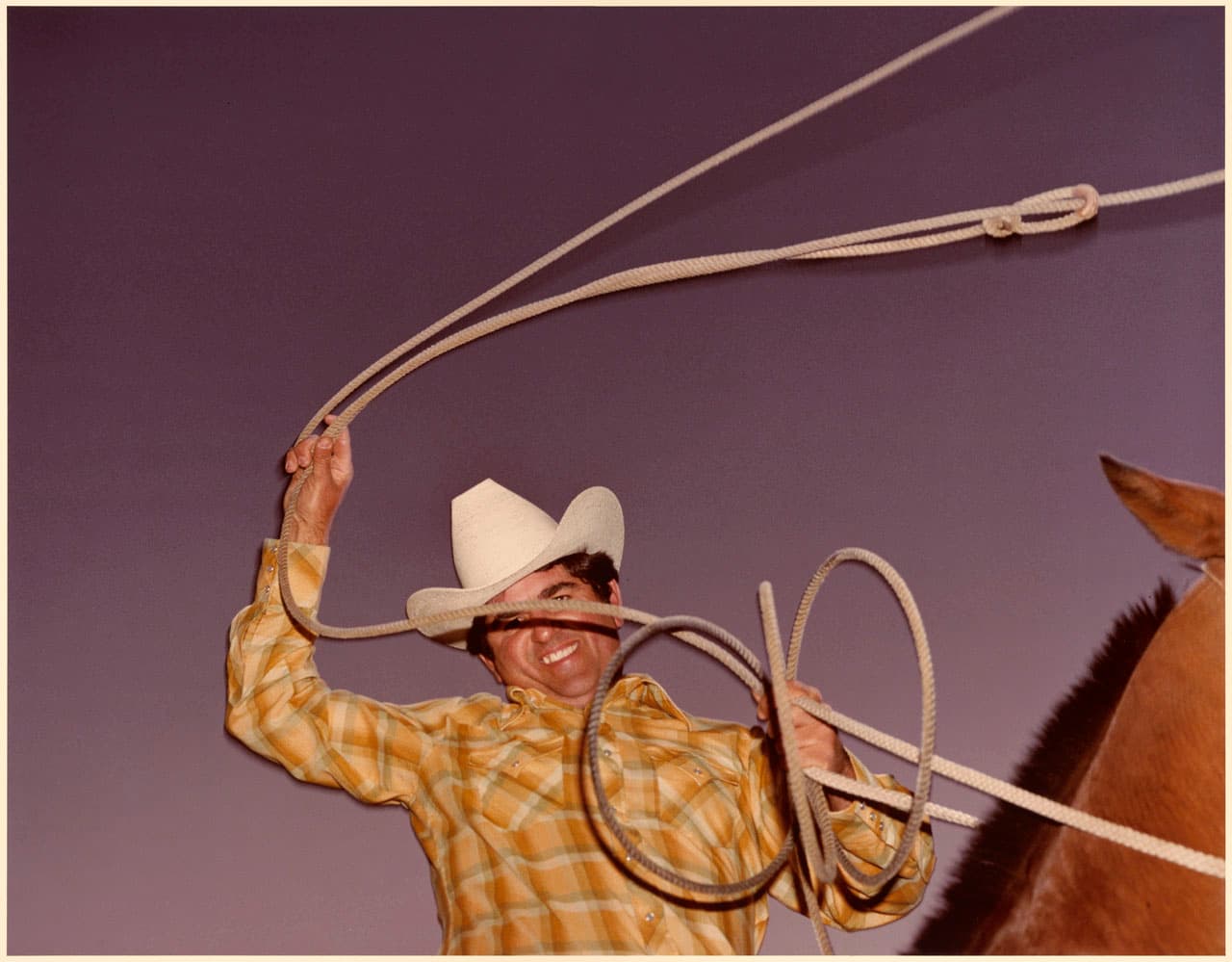 The Crocker’s recent acquisition includes the work of many women photographers. Born in Mexico in 1957, Flor Garduño’s black-and-white images, such as Marcos and Simona, Candelaria, Bolivia, reference ancient folklore and ritual, projecting a sense of timelessness [fig. 6]. In the late-1970s, Berkeley-born artist Susan Felter took an immersive series of photographs documenting the rodeo in Northern California. In her dizzying Ektacolor print of professional cowboy Jeff Barmby [fig. 7], shot in Vallejo, viewers occupy the place of the cattle. Gazing up at lasso wielding Barmby from below, we are swept up into the thrill and energy of the cowboy’s pursuit.