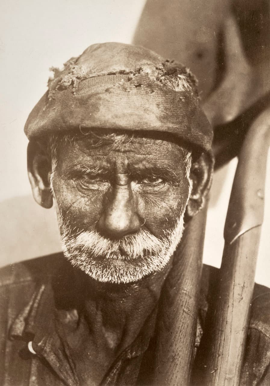 During this same period in America, artists were beginning to feel the effects of the Great Depression. Lewis Hine was a documentary photographer employed by the Works Project Administration (WPA) under President Roosevelt’s New Deal. Hine’s 1931 photograph entitled Mother and Child in Care of Red Cross During Drought sensitively captures a mother gazing at her young child during a time of great economic and emotional distress [fig. 3]. Similarly hired through Roosevelt’s New Deal, under the Farm Security Administration, Walker Evans is best known for his photographs of agricultural workers in the American South. In the early 1930s, he traveled to Cuba to take photographs for The Crime of Cuba, a book written by the American journalist Carleton Beal criticizing the regime of Cuban President Gerardo Machado. Using a tripod and box camera, Evans made use of his large negatives to focus on the faces of twelve coal dock workers, covered in blackened dust. In the Crocker’s photograph, an elderly man’s weathered skin and furrowed brow reveal the hardship he endured during the growing political unrest and economic depression of the 1930s [fig. 4].