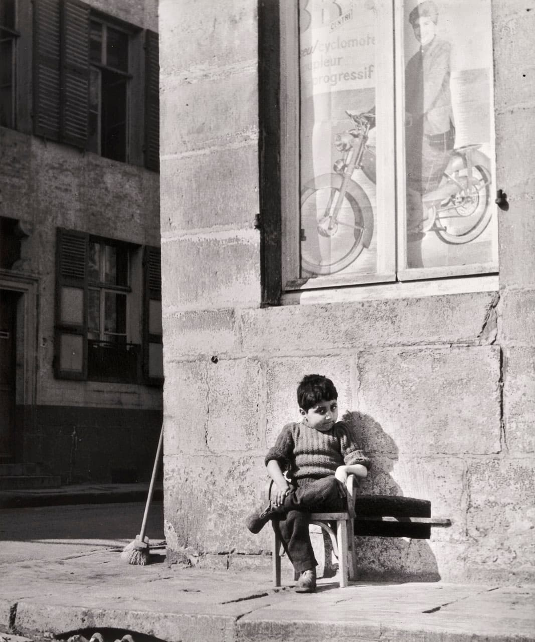 Another collecting area for the Ramers highlights socially conscious photographs of post-war Europe. The couple lived in London for many years and purchased works directly from photographers and their galleries. As a teenager, the German-born British photographer Dorothy Bohm received a Leica camera from her father as she boarded a train to flee from the Nazis. For the remainder of her life, she focused her lens on the everyday people of Europe, first during the war and then during the post-war reconstruction. In one image taken in Grenoble, France, in 1950, a young boy is seated next to a broom in a bright city square [fig. 5]. With one leg crossed over the other, he mimics the pose of an adult taking a break from work. The British photographer Shirley Baker got her start taking industrial photographs for the textile and chemical manufacturer Courtaulds. She went on to develop a freelance photography business, eventually contributing her work to The Guardian newspaper. Baker’s sympathetic images of working-class children playing in the blighted streets of Manchester and Salford in the 1960s and 1970s reveal how wonder and joy can still persist during times of immense hardship.