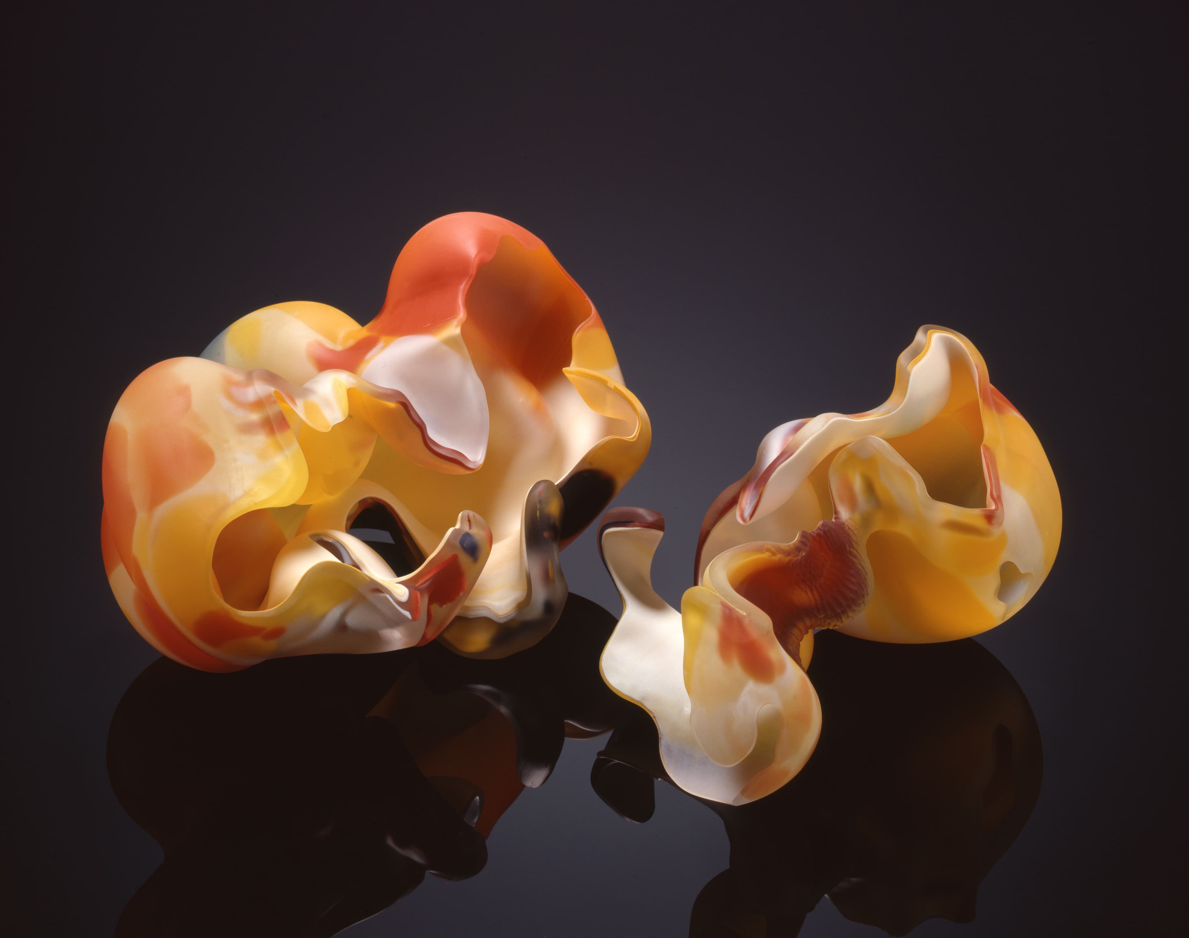 Lipofsky studied ceramics at the University of Illinois Urbana-Champaign, before turning to glass in graduate school at the University of Wisconsin-Madison, where he studied with renowned glass artist Harvey Littleton. Lipofsky’s contributions to studio glass during the mid-to-late 20th century can not be overstated. In 1964, during the early years of the Studio Glass movement and at the young age of 26, he joined the faculty at the University of California, Berkeley. There, he built the university’s first glass furnace, with the help of six students. In 1967, after leading a summer glass workshop at the California College of the Arts and Crafts (CCAC), Lipofsky taught courses at both Bay Area institutions for five years. Between 1972 and 1987, he worked full-time at CCAC and was a founding member of the Glass Art Society, participating in national and international glass communities and inspiring a new generation of artists working in California.