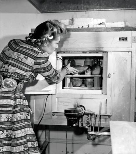 Born to an Episcopal family in Newton, New Jersey, Lindheim was raised on a ranch in Tucson, Arizona. In the 1930s, she enrolled at the California School of Fine Arts (later San Francisco Art Institute) and the Chouinard Art Institute (later absorbed into CalArts) in Los Angeles, and studied sculpture under the mentorship of nationally celebrated artists Alexander Archipenko, Isamu Noguchi, and Jose De Creeft. In the 1940s, she moved to Northern California—living briefly in Davis, Mill Valley, San Francisco, and Forrest Knolls—with her husband, Donald Lindheim. Following her husband’s death in WWII, Lindheim settled in Sausalito and delved into ceramics, studying with Antonio Prieto at the California College of Arts and Crafts (now California College of the Arts). In 1954, she returned to the Southwest on a solo camping trip to Santa Fe, San Ildefonso Pueblo, and the Chuska Mountains region on the Navajo Nation. During this trip, she met potter Rose Cata Gonzales (Ohkay Owingeh Pueblo also known as San Juan Pueblo), known for her coiled, carved, and burnished black ware. Through her experiences in the Southwest and within the artistic milieu of the Bay Area, Lindheim developed her ceramic practice, embracing clay as a creative medium and vital means of self-expression.
