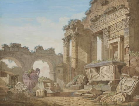 All the objects in Reform to Restoration are drawn from the Horvitz Collection, one of the most important private collections of French art in the United States. More than 100 drawings and paintings are organized around six thematic categories: Antiquity, Revolution, Devotion, Service, Empire, and Honor. Each grouping reflects the variety of social concerns, political events, and visual movements that influenced artists living in the tumultuous period between 1770 and 1830, including many well-known artists such as Jacques-Louis David and Jean-August- Dominique Ingres. The exhibition begins by exploring the French Royal Academy of Painting and Sculpture, which was founded in Paris in 1648. This state-sponsored institution promoted a curriculum based on mastering the human form through the practice of drawing live models. At the same time, the Academy encouraged studying the Greek and Roman classical traditions, as seen in the work of architect and artist Charles-Louis Clérisseau, who spent roughly two decades in Rome. In his Capriccio with Ruins (1789) [fig. 1], for instance, we see an imagined landscape of ancient Roman monuments that combines real architectural elements with fantasy, a popular 18th-century genre. The enthusiasm for the classical past had significant resonance across French politics and culture, most notably in the wake of the Revolution, when the government was reconceived in the model of the ancient Roman Republic (circa 509–27 BCE). In Allegory of the Revolutionary Regime [fig. 2], artist Louis Lafitte utilizes classical sources, such as the Roman poet Horace and the ancient Roman historian Livy, to critique the Revolution, and particularly its most violent phase, the Reign of Terror. In the foreground, before the Temple to Janus (the god of transition and time), the allegorical figures of War and Conflict overcome Justice, suggesting the Revolution resulted in injustices similar to early Republican Rome.[2]