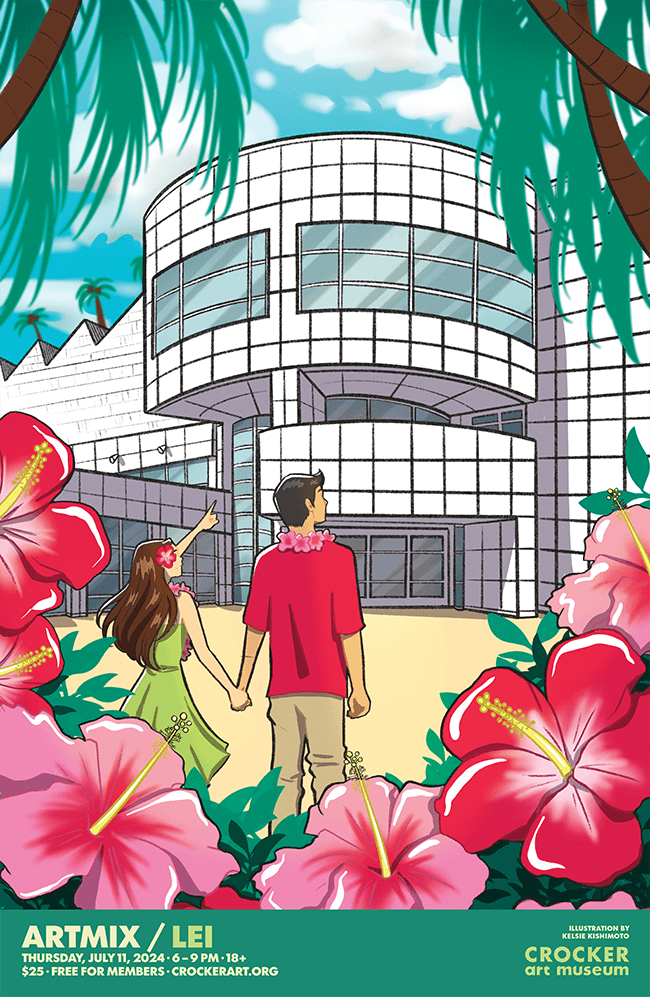 Aloha, ArtMix! Escape the scorching Sacramento sun with ArtMix: Lei, a lush paradise featuring tantalizing performances, tropical cocktails, and cascades of colorful flowers. “Lei” back and relax in your best beachwear while swaying to island beats from DJ Cuts and surfer rock by The Me Gustas. Experience lei making with Leilani Leisand, craft your own dashboard hula gal with The Reclaimist, and shop over a dozen Hawaiian vendors selling beautiful crafts, baked goods, and kava at the Aloha Vendor Market by The Creative Space. Pop in to the Museum Store to swoop up the commemorative event poster, or a Wish You Were Here postcard, by Kelsiekishidraws.