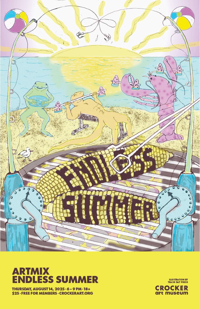 Dive in for beach party vibes at an evening swimming with seaside energy. Enjoy live surf rock and punk rock bands and a laid-back food truck feast. Explore the tropical side of the Crocker's collection with getaway-themed tours that will make you feel like you’ve traveled the seven seas—all without leaving the Museum.