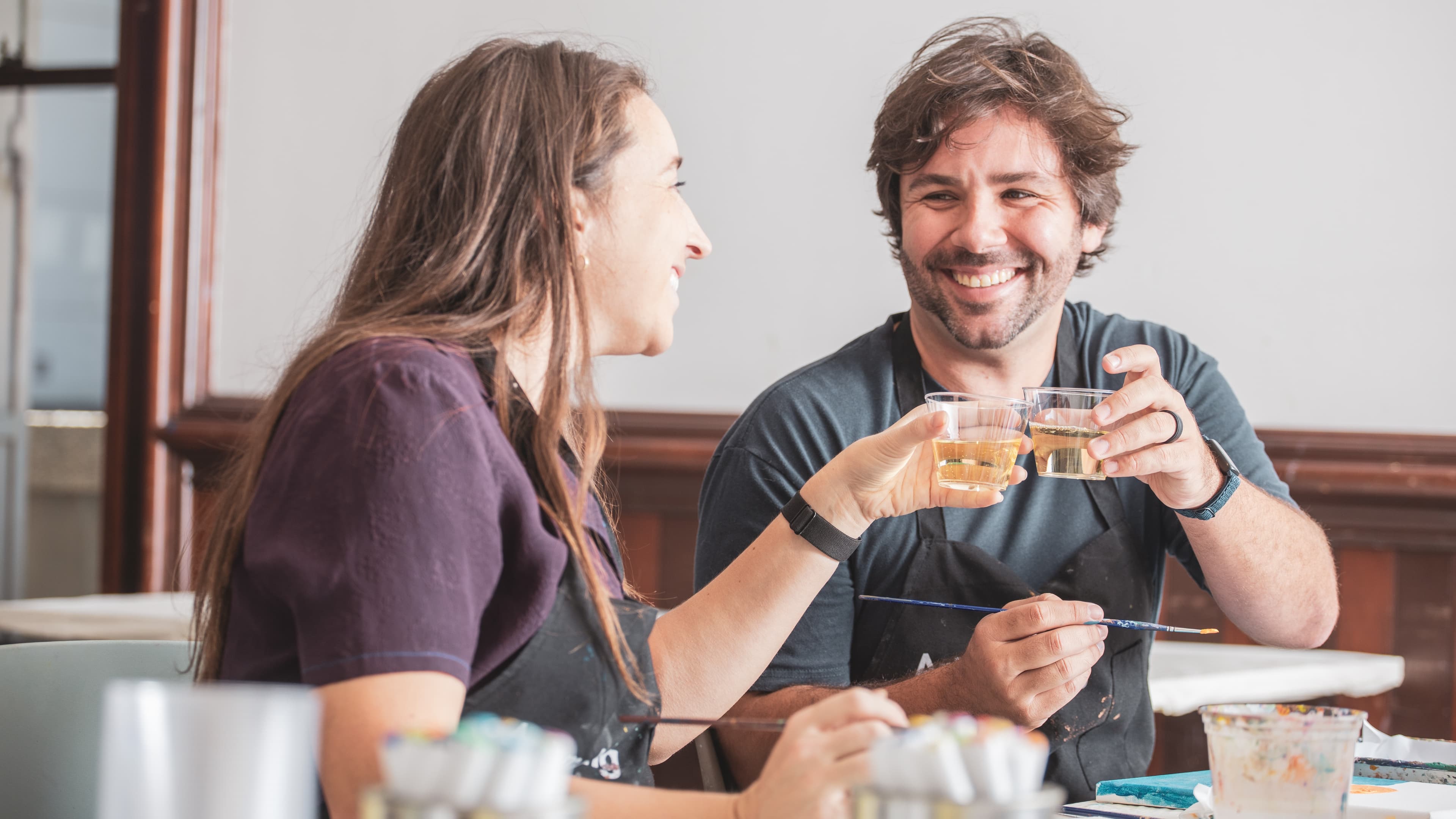 Sip on bubbly and follow an expert lesson on foreground, middle ground, and background as you create your own acrylic landscape painting.